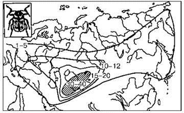 Рис. 2.41. Центры разнообразия жуков рода скрытоглавы азиатские. По Г.М. Абдурахманову и др. (2001).