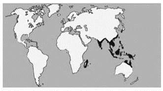 Рис. 3.46. Ареал диптерокарповых Dipterocarpaceae в Старом свете. По Appanah, Turnbull (1998).