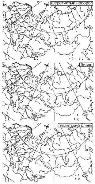Фауна большей части Восточной Европы имела смешанный характер, местами вплоть до недавнего времени. Так, в конце XVIII в. на пространстве от нынешней Воронежской области до севера Казахстана и юга Западной Сибири еще встречались тарпаны и куланы (Гмелин, 1771); северные олени при зимних кочевках регулярно доходили до севера калмыцких степей (Паллас, 1773) и до Украины (Гепнер и др., 1961). В начале XIX в. сурки были распространены до нынешней Калужской области (Зельницкий, 1804), а в конце XVIII в. были обычны в Тамбовской губернии (Паллас, 1773).