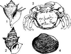 1 — Paramelania damoni, 2 — Tiphobia horei; 3 — Potamonautes (Platythelphusa) armata, 4 — наяда Caelatura burtoni (по Coulter, 1991).