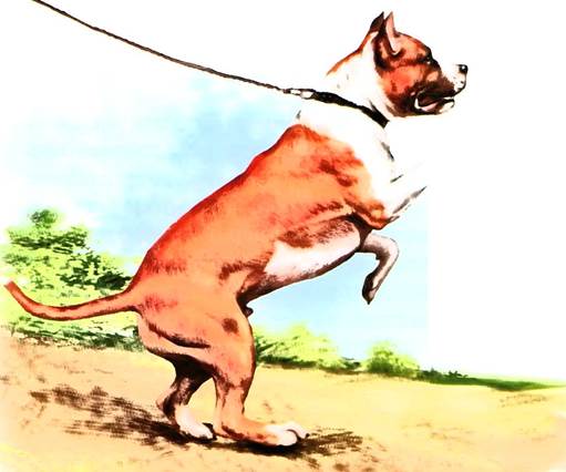 Даже в самой Англии, скрещивая бульдогов с терьерами, получили собак, которых использовали для давно уже запрещенных ныне собачьих боев. Их называли “буль-и-терьер”, а после получилось “бультерьер”. От бульдогов они унаследовали силу, задиристость и упорство, от терьеров ловкость, подвижность и снова упорство. Так возникли три породы бультерьеров — бультерьер, миниатюрный бультерьер и стаффордширский бультерьер. Внешность у бультерьера и у “минибулей” очень своеобразная. Гладкая шерсть, великолепная мускулатура, корпус атлета, широкая грудь, крепкие ноги. Такую собаку сбить с ног нелегко. Очень своеобразная голова с сильными челюстями. Это смелая, очень сильная, хотя по росту небольшая собака. Но прежде всего “буль” — это характер. И характер своеобразный, может быть, даже противоречивый. С одной стороны, безусловно предан хозяину и его семье, а, с другой стороны, нечего и думать о “служебном использовании” этой собаки. Слушаться он не любит. Любители бультерьеров говорят о своих собаках много хорошего, но при этом обязательно добавляют — “при правильном воспитании”. Потомок английского стаффордширского терьера — американский стаффордширский терьер, но крупнее, сильнее и злобнее своего предка. Отношение к этим породам во всем мире далеко не однозначное. Во многих странах разведение их запрещено.