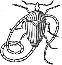 Рис. 3.45. Волосатик, выходящий из анального отверстия жука