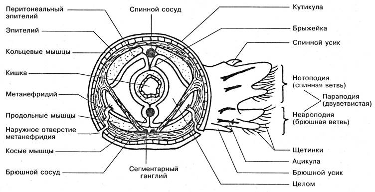 Рис. 3.56. Поперечный разрез через туловищный сегмент нереиды