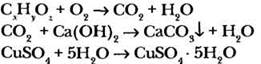 Поскольку органические вещества, как правило, содержат помимо углерода водород, при горении они образуют углекислый газ и воду. Целесообразно продемонстрировать опыт, подтверждающий наличие углерода и водорода в органическом веществе. В пробирку с газоотводной трубкой, закрепленную в лапке штатива, помещают 1-2 г крахмала, сверху насыпают тонкий слой порошка оксида меди (II), а около отверстия помещают немного безводного CuSО4.