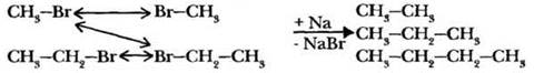 Сильным учащимся, очевидно, будет по силам решить проблемную ситуацию: «Какие вещества получатся, если в реакцию Вюрца ввести два различных галогеналкана?» Очевидно, возможны три различных комбинации двух галогеналканов, которые должны привести к синтезу трех конечных углеводородов: