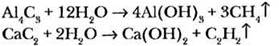 Учитель обращает внимание на то, что карбиды различных металлов при гидролизе ведут себя по-разному. В одних случаях в качестве органического продукта выделяется метан, в других — ацетилен. Но знать необходимо только две реакции: карбида алюминия и карбида кальция с водой: