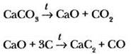 Обязательно нужно напомнить, что карбид кальция получают в промышленности взаимодействием углерода (кокс) с оксидом кальция, который образуется при прокаливании известняка СаСО3: