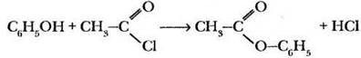 Галогенангидриды карбоновых кислот гораздо более активны, чем сами кислоты в реакциях нуклеофильного замещения, поскольку атом углерода функциональной группы несет больший положительный заряд. Например, получить сложный эфир фенола действием на него уксусной кислоты не удается, а при реакции с ацетилхлоридом легко образуется уксусно-фениловый эфир (фенилацетат):
