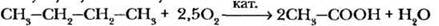 1) Окисление алканов. Ряд кислот в промышленности получают окислением предельных углеводородов. Практическое значение имеет каталитическое окисление метана до муравьиной кислоты. Другие алканы при окислении претерпевают разрыв углеводородной цепи примерно посередине. Так, при каталитическом окислении бутана получают уксусную кислоту: