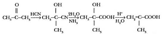 Гомологом акриловой кислоты является 2-метилпропеновая (меакриловая) кислота. Она содержится в виде сложных эфиров в ромашковом масле. В промышленности ее можно получить на основе ацетона циангидринным синтезом: