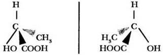 В качестве примера молекул с асимметрическим центром приводится α-аланин или молочная кислота. Ребята находят асимметрический центр и помечают его звездочкой.