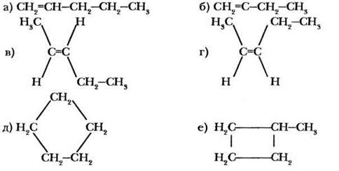 Какие из веществ, структурные формулы которых приведены ниже, являются изомерами?