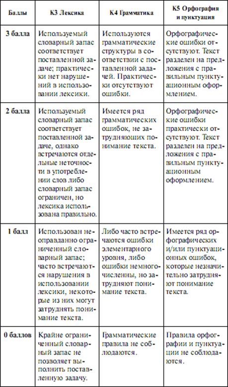 Критерии оценивания письменного высказывания с элементами рассуждения