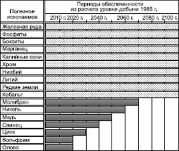 Рис. 153. Обеспеченность полезными ископаемыми на XXI в. (по Л. В. Таусон)