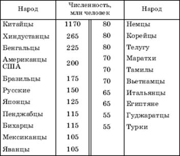 ЧИСЛЕННОСТЬ КРУПНЕЙШИХ НАРОДОВ МИРА В НАЧАЛЕ XXI В.