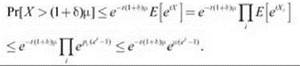 Две случайные переменные X и Y называются независимыми, если для всех значений i и j события Pr[X = i] и Pr[Y = j] являются независимыми. Это определение естественным образом расширяется для больших множеств случайных переменных. Теперь рассмотрим случайную переменную X, которая является суммой нескольких независимых случайных переменных, принимающих значения 0 или 1: X = X1 + X2 +...+ Xn, где Xi принимает значение 1 с вероятностью рi, и значение 0 в противном случае. Из линейности ожидания следует