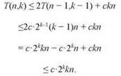 Индукцией по k ≥ 1 легко доказывается, что T(n, к) ≤ с ∙ 2kkn. В самом деле, если это утверждение истинно для k - 1, то