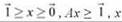Базовая задача линейного программирования может рассматриваться как более сложная версия этой задачи, в которой равенства заменены неравенствами. Говоря конкретнее, рассмотрим задачу определения вектора x, удовлетворяющего неравенству Ax ≥ b. Под этой записью мы имеем в виду, что каждая координата вектора Ax должна быть больше либо равна соответствующей координаты вектора b. Такие системы неравенств определяют области в пространстве. Например, предположим, x = (x1, x2) — двумерный вектор, и имеются четыре неравенства: