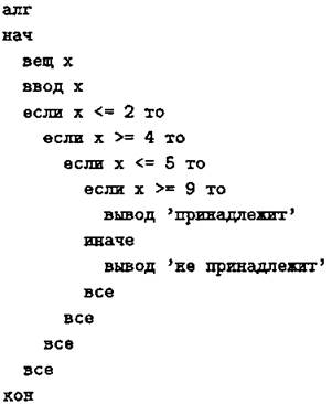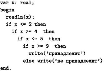 В столбцах условий укажите «да», если условие выполнится, «нет», если условие не выполнится, «—» (прочерк), если условие не будет проверяться, «не изв.», если программа ведёт себя по-разному для разных значений, принадлежащих данной области. В столбце «Программа выведет» укажите, что программа выведет на экран. Если программа ничего не выводит, напишите «—» (прочерк). Если для разных значений, принадлежащих промежутку, будут выведены разные тексты, напишите «не изв.». В последнем столбце укажите «да» или «нет».