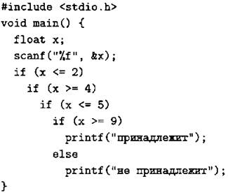1. Перерисуйте и заполните таблицу, которая показывает, как работает программа при аргументах, принадлежащих различным промежуткам (A, В, С, D и Е). Считать, что отмеченные точки (2, 4, 5, 9) принадлежат заштрихованным областям (A, С и Е соответственно).