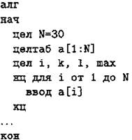 В цикле от 1 до 30 вводим элементы массива А с 1-го по 30-ый.