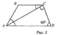 Решение: 1) Рассмотрим ∆ACD: ∠C = 90°, ∠D = 60°, следовательно, ∠А = 30°, значит, CD = 1/2AD. 2) Так как ∠ВАС = ∠CAD = 30°, значит, ABCD - равнобедренная трапеция, CD = АВ. 3) Так как ∠CAD = ∠BAC, следовательно, ∠ВАС = ∠BCA,следовательно, ∆АВС - равнобедренный, АВ = ВС. 4) РABCD = АВ + ВС + CD + AD. Так как CD = 1/2AD, а АВ = ВС = CD, то: