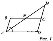 (Ф) Решить задачи: 1. Через точку во внутренней области равностороннего треугольника проведены две прямые, параллельные двум сторонам треугольника. На какие фигуры разбивается этими прямыми данный треугольник? 2. Дано: ABCD - параллелограмм, AD = 2АВ, AM - биссектриса ∠BAD. Докажите, что часть отрезка AM,лежащая во внутренней области параллелограмма ABCD, равна части, лежащей во внешней области |
