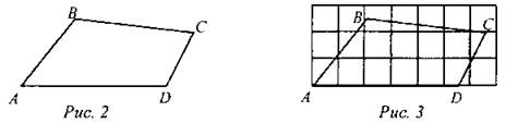 (Ф) 1. Ввести понятие площади. - Понятие площади каждому известно из жизненного опыта. Часто мы слышим: “площадь нашей квартиры равна 60 м2”. Как вы понимаете это предложение? (Это величина квартиры. Пол данной квартиры можно застелить 60 квадратами со стороной 1 м.) - С сегодняшнего дня мы будем учиться вычислять площади различных геометрических фигур. 2. Определить единицы измерения площадей. - Как и измерение длин отрезков, измерение площадей проводится с помощью единиц измерения. Какие единицы измерения площадей вам известны? (Квадратный метр - м2; квадратный сантиметр - см2; квадратный миллиметр - мм2; ар (сотка) - 100 м2; га (гектар) - 10 000 м2, и др.) - Как вы понимаете утверждение “единица измерения площади см2”? (Площадь измеряется квадратами со стороной 1 см.) - Может ли площадь фигуры выражаться отрицательным числом? (Нет, не может.) 3. Дать представление об измерении площадей многоугольников способом разбиения фигуры на квадраты. - Как измерить площадь фигуры, изображенной на рис. 2 в квадратных дециметрах? (Нужноразбить фигуру на квадратные дециметры.) - Сторону AD разобьем на отрезки по 1 дм каждый и через концы отрезков проведем прямые, перпендикулярные стороне AD.Далее проведем прямые, параллельные AD, на расстоянии 1 дм друг от друга (рис. 3.). Сосчитаем количество целых квадратов, вместившихся в фигуру ABCD. Неполные квадраты разобьем на квадратные сантиметры. Каждый квадратный сантиметр - это сотая часть квадратного дециметра. Таким образом, можно вычислить площадь фигуры в дм2 с точностью до 0,01 дм2. Для более точного измерения площади данной фигуры неполные квадраты со стороной 1 см разобьем на квадраты со стороной 1 мм, и т. д.