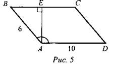 Вариант I Стороны параллелограмма 10 см и 6 см, а угол между этими сторонами 150°. Найдите площадь этого параллелограмма. 1. ∠В = 180° - 150° = 30°. 2. Катет АЕ лежит против угла 30°, поэтому АЕ = 0,5АВ = 3 см. 3. SABCD = BC ∙ AE = 10 ∙ 3 = 30 (см2).