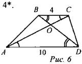 а) ∆ВОС ~ ∆DOA. б) SBOC : SDOA = 8 : 32 = 1/4 = k2, k = 0,5. в) ВС : AD = k = 0,5, значит, ВС = 5 см. Ответ: 5 см |