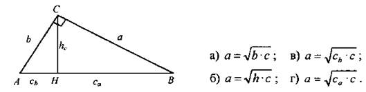 1) Выберите верное соотношение между элементами прямоугольного треугольника.