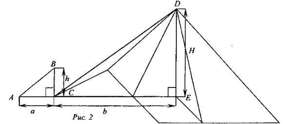 Когда тень от палки будет той же длины, что и сама палка, то длина тени от центра основания пирамиды до ее вершины будет иметь ту же длину, что и сама пирамида. СЕ = ED, то есть Н = b.