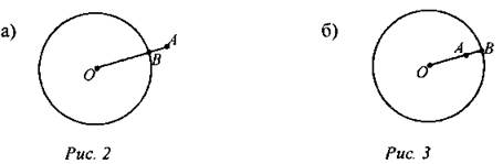 АВ = ОА - r, АВ = 12 - 8 = 4 (см) АВ = r - ОА; АВ = 8 - 6 = 2 (см) 3. Докажите, что АВ < АВ1, используя неравенство треугольника. Имеем ОА < ОВ1 + АВ1, ОВ + АВ < ОВ1 + АВ1, так как ОВ = ОВ1 = r, то АВ < АВ.