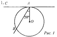 На рис. 1 точка О - центр окружности, СА - касательная к окружности, ∠ВАО = 20°. Найдите: ∠BAC.