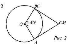 На рис. 2 точка О - центр окружности, АС и ВС - касательные к окружности, ∠АОВ = 140°. Найдите: ∠С.