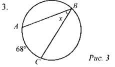 На рис. 3 ∪AС = 68°. Найдите: угол х. Ответ: 1) 70°; 2) 40°; 3) 34° |