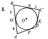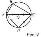 По данным рисунка, длина стороны AD равна: а) 7; б) 5; в) 6. 9. Квадрат вписан в окружность диаметра 8 см. Периметр квадрата равен: а) 32 см; 6) 16√2 см; в) 16 см |