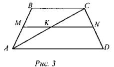 2. Чем являются отрезки МК и KN, если MN- средняя линия трапеции ABCD?