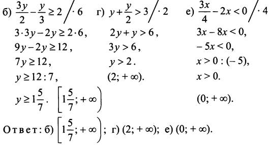 В предлагаемых заданиях необходимо уметь находить общий знаменатель дробей, входящих в запись уравнения, затем домножить обе части неравенства на общий знаменатель и решить полученное неравенство. Также следует уделять внимание изображению множества решений на координатной прямой.