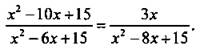 Заметим также, что должны быть выполнены условия: у ≠ 6х и у ≠ 8х (ОДЗ). Решим теперь уравнение у2 - 21ху + 98х2 = 0 относительно неизвестной у и получим: у = 7х и у = 14х (оба корня удовлетворяют ОДЗ). Возвращаясь к переменной х, имеем уравнения х2 + 15 = 7х (корней не имеет) и х2 + 15 = 14х (корни