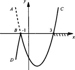 При х < -1 получаем функцию у = -(х + 1)(х - 3), которая отличается от предыдущей только знаком. Поэтому участок АВ (для х < -1) предыдущей параболы отражаем зеркально вниз и получаем часть BD требуемого графика. Построен график данной функции.