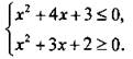 Видно, что неравенство х2 + 4х + 3 ≤ 0 (график у1 находится не выше оси абсцисс) выполнено для х ∈ [-3; -1]. Неравенство х2 + 3х + 2 ≥ 0 (график у2 находится не ниже оси абсцисс) выполнено при х ∈ (-∞;-2]U[-1;+∞). Оба неравенства выполнены для х ∈ [-3; -2]U{-1}.