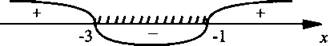 При х ∈ (-∞; -3) в многочлене х2 + 2х - 3 = (х + 3)(х - 1) оба сомножителя отрицательные. Поэтому многочлен х2 + 2х - 3 > 0 (отмечено знаком «+»), и неравенство не выполнено.