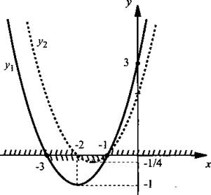 б) Построим графики функций у1 = х2 + 4х + 3 и у2 = х2 + 3х + 2.