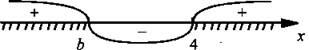 а) Если b < 4, то диаграмма знаков изображена на рисунке. Неравенству удовлетворяют промежутки, расположенные за корнями, т. е. х ∈ (-∞; b]U[4; +∞).