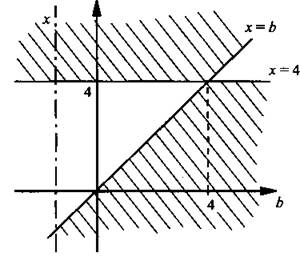 или х1 = b и х2 = 4. Параметр b может быть меньше числа 4, совпасть с ним или оказаться больше числа 4. Рассмотрим эти случаи.