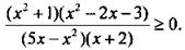 Отметим прежде всего, что (5х - х2)(х + 2) ≠ 0, или х(5 - х)(х + 2) ≠ 0, т. е. х ≠ -2, х ≠ 0, х ≠ 5 (ОДЗ неравенства). Сведем данное рациональное неравенство к алгебраическому (аналогичному примеру 1). Для этого умножим обе части неравенства на положительное выражение - квадрат знаменателя (5х - х2)2(х + 2)2. При этом знак неравенства не меняется и получаем: (х2 + 1)(х2 - 2х - 3)(5х - х2)(х + 2) ≥ 0. Разложив квадратные трехчлены на множители, имеем: (х2 + 1)(х - 3)(х + 1)х(5 - х)(х + 2) ≥ 0. Решаем это неравенство методом интервалов, учитывая, что все корни многочлена имеют первую кратность: х ∈ (-∞; -2]U[-1; 0]U[3; 5).
