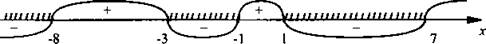 т. е. неравенство предыдущего типа. Решая его аналогично, найдем: х ∈ (-∞; -8]U(-3; -1)U[1; 7).