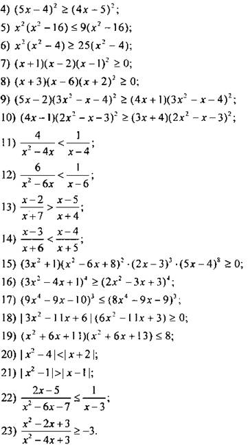 (х ≠ 4), или 1 ≥ 1. Так как получено верное неравенство, то рассматриваемый промежуток (за исключением точки х = 4) является решением неравенства, т. е. х ∈ [3; 4)U(4; +∞).