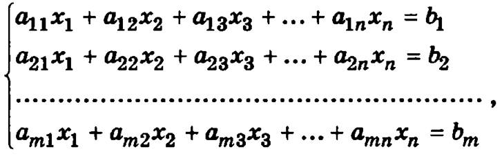 где а11, а12, а13, аmn — коэффициенты уравнений системы; x1, х2, х3, ..., xn — неизвестные, b1, b2, b3, ..., bm — правые части уравнений системы.